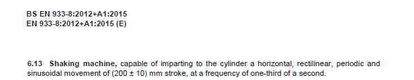 Σύμφωνα με το ΕΝ 933-8 (Tests for geometrical properties of aggregates. Assessment of fines. Sand equivalent test) για την ανάδευση του υλικού απαιτείται μηχανικός αναδευτήρας